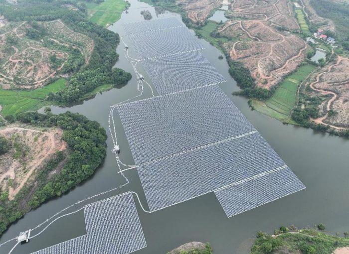 “送瘟神”水庫水上鋪設光伏板 攝影:陳磊